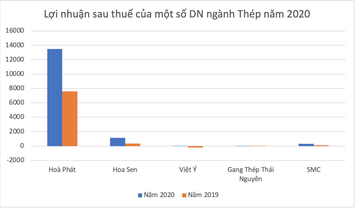 Năm 2020 được cho là năm thăng hoa của ngành thép, giúp các “ông lớn” như Tập đoàn Hòa Phát, Thép Việt – Ý, Hoa Sen… có các khoản lãi tăng đột biến. Ngược chiều, Gang thép Thái Nguyên lợi nhuận sụt giảm, 2 doanh nghiệp FDI ngành thép là Fomosa và Posco Yamoto Vina báo lỗ nghìn tỷ đồng.