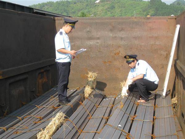 Hải quan Lạng Sơn kiểm tra thép NK. Ảnh: Hồng Nụ