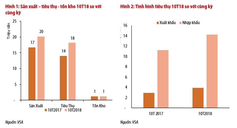 Theo báo cáo ngành thép 10 tháng của CTCP Chứng khoán Rồng Việt (VDSC), thị trường thép Việt Nam 10 tháng vẫn duy trì tích cực với sản lượng tiêu thụ tăng 28% so với năm ngoái. Trong đó, tiêu thụ nội địa tăng 27% và xuất khẩu tăng 33%.