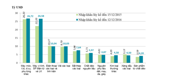 (Luỹ kế đến 15/12/2016 so với cùng kỳ năm 2015)