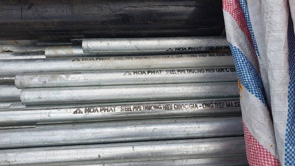 Ống thép có dấu hiệu giả mạo nhãn hiệu thép Hòa Phát.