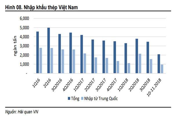 Tình trạng dư cung ngày càng tồi tệ nhưng rủi ro nhập khẩu thấp hơn. Một trong những lý do quan trọng nhất cho tình trạng thừa cung đến từ thị trường xuất khẩu. Khoảng 40% thép cuộn Việt Nam được xuất ra nước ngoài. Năm 2018 là năm chủ nghĩa bảo hộ dâng cao khi các quốc gia (bao gồm Mỹ, Thái Lan và Malaysia – thị trường xuất khẩu chính của Việt Nam) sử dụng nhiều rào cản thương mại như thuế đối với các sản phẩm thép để bảo vệ các nhà sản xuất trong nước.