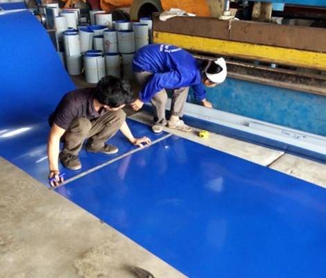 Nhân viên Công ty Phong Phú đang cắt tấm tôn không đạt chất lượng cho khách hàng.