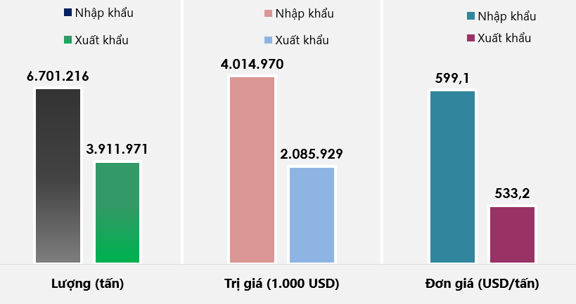 Nửa đầu năm 2020 Việt Nam xuất khẩu 3,91 triệu tấn sắt thép tương đương 2,09 tỉ USD; giá xuất khẩu trung bình đạt 533,2 USD/tấn.