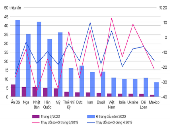 Điểm sáng là thị trường Brazil tăng mạnh 196% về lượng và tăng 145% về kim ngạch, đạt 12,55 triệu USD. Tiếp sau là các thị trường Đức, Philippines tăng cả về sản lượng và kim ngạch. Tính trong 8 tháng năm 2020, nhập khẩu thép về Việt Nam đạt 9,35 triệu tấn với trị giá trên 5,43 tỉ USD, giảm lần lượt 3% về lượng và 13% về trị giá so với cùng kì năm 2019. Trong đó, lượng thép nhập khẩu từ Trung Quốc khoảng 2,63 triệu tấn, với trị giá nhập khẩu gần 1,63 tỉ USD, chiếm 28% tổng lượng thép nhập khẩu và 30% tổng kim ngạch nhập khẩu cả nước.